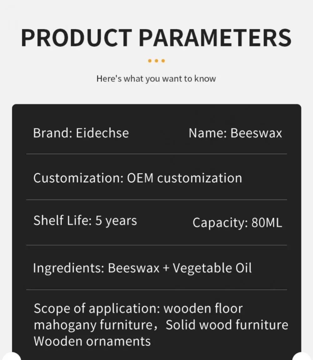▶ Protect The Color - Beeswax refresh your items, work efficiently without affecting the color, can be applied to painted cabinets and floors, clean and shiny surface.