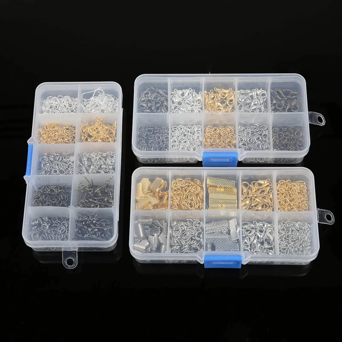 10 Grid Accessory Set Box, Single Loop Mazai Buckle, Lobster Buckle, Ear Hook, Tail Chain, Gold and Silver Handmade DIY Jewelry