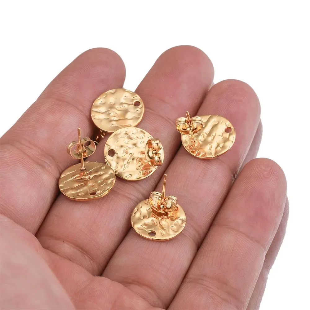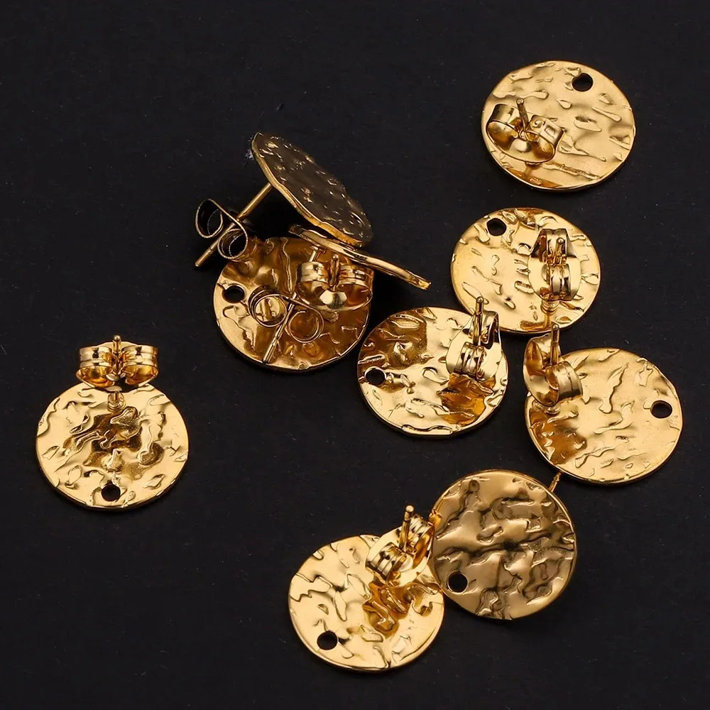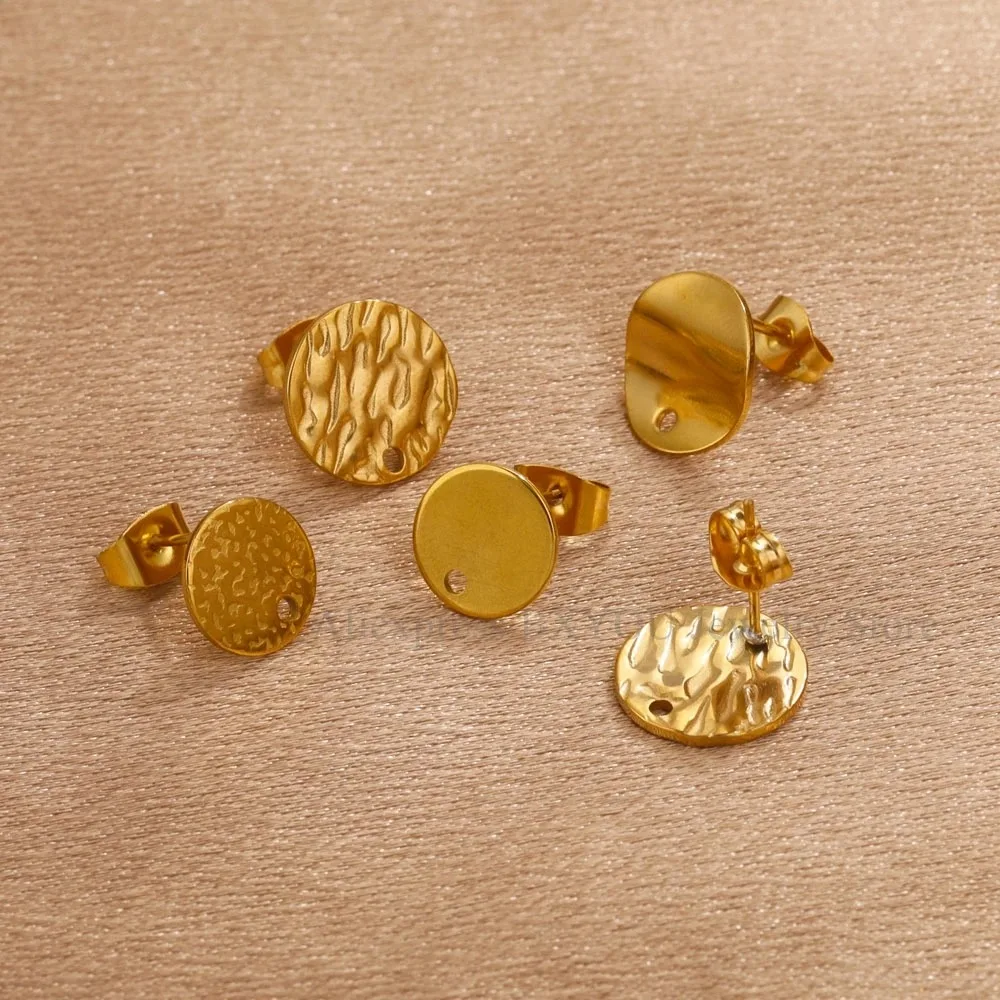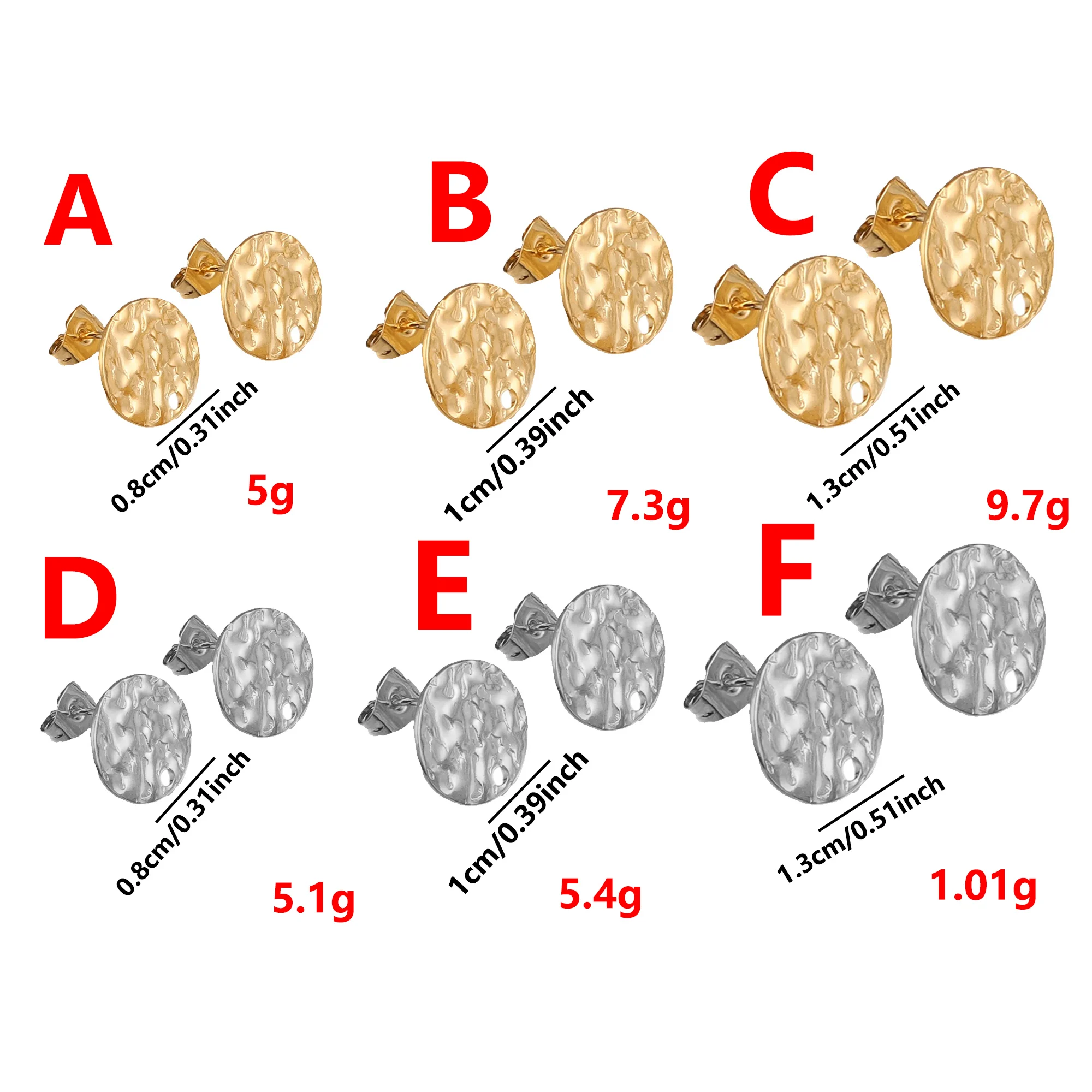 10 pieces, stainless steel deep embossed welding pin earrings, there are three types of specifications, there are two colors: gold, steel. The whole shows a unique gloss. The steel color is the natural color of stainless steel, which will not fade or fade, can touch water and prevent sweat. Suitable for matching spring and summer clothing, long skirts, short skirts, t-shirts, jeans, etc. Style classical literature and art.