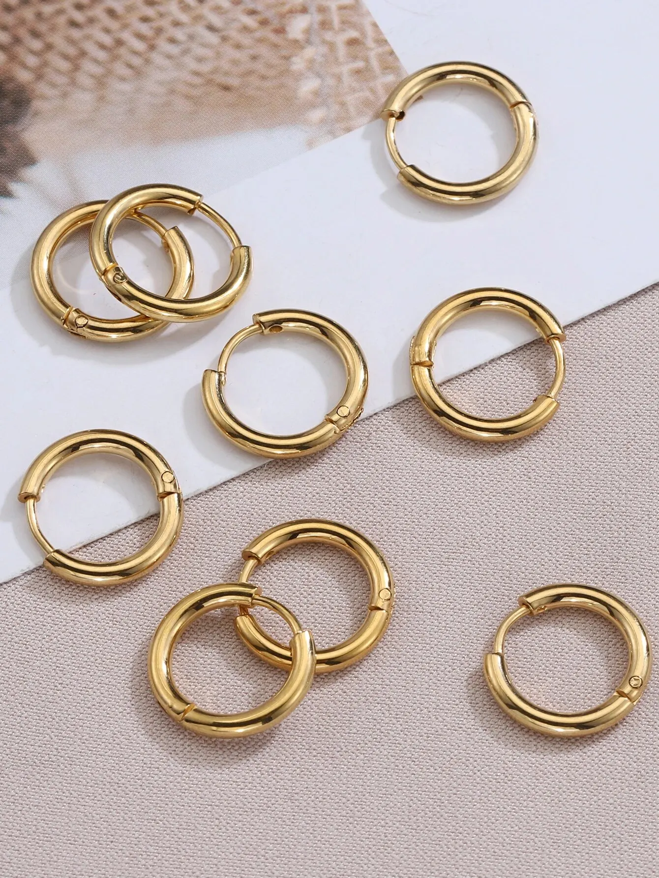 10pcs Gold Color Stainless Steel Ear Hoop Earrings Women Earrings Men Punk Hiphop Gift Fashion Jewelry Piercing Accessories