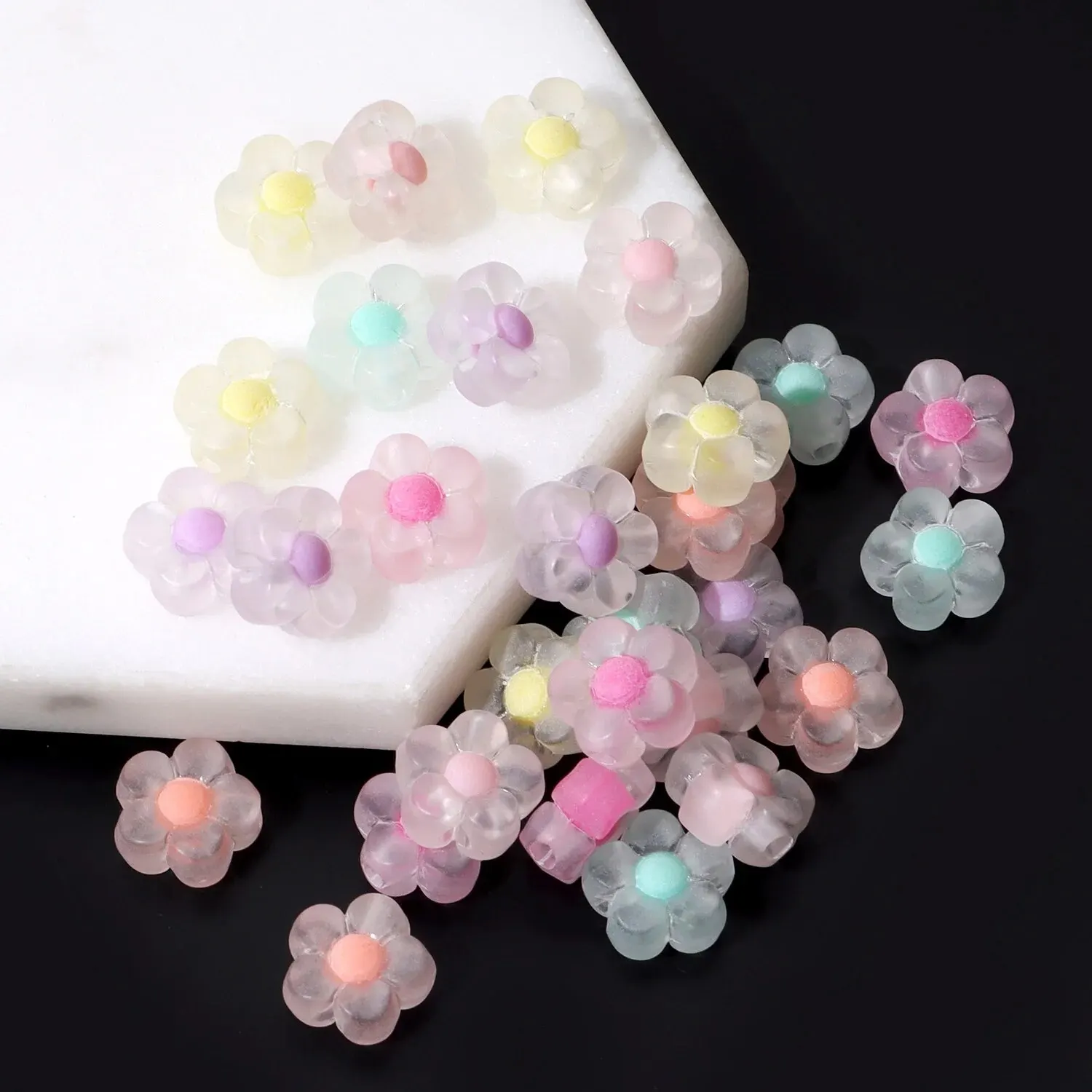 120pcs Acrylic 12mm/0.47'' Five Petal Flower Beads Mixed Colors