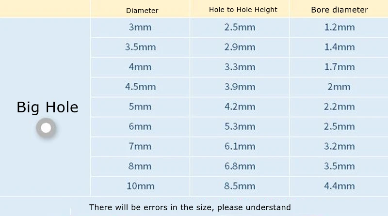 3.Product size: 2/3/4/5/6/7/8/10mm