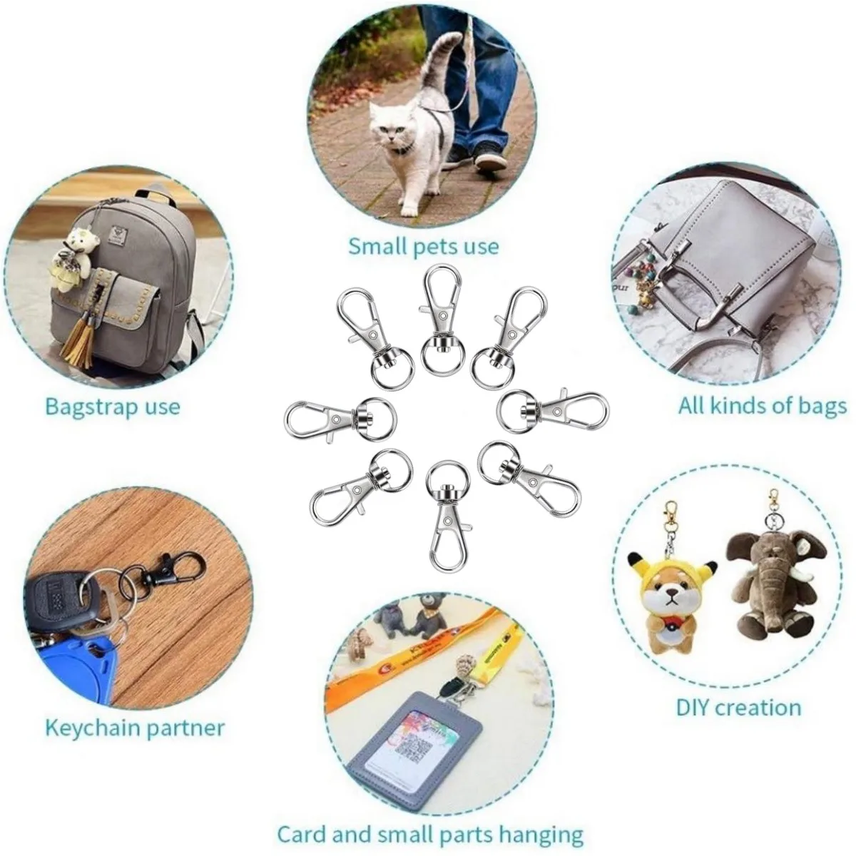 The swivel lanyard snap hook is perfect for making purses, backpacks, handmade dog collars, luggage straps and more.
