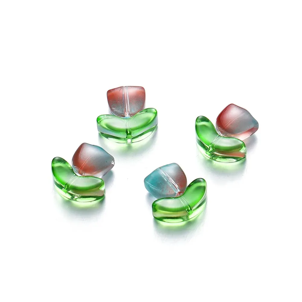 30pcs/bag Transparent Small Tulip Glass Flower Beads Necklace Spacer Beads For DIY Jewelry Handmade Crafts Accessories
