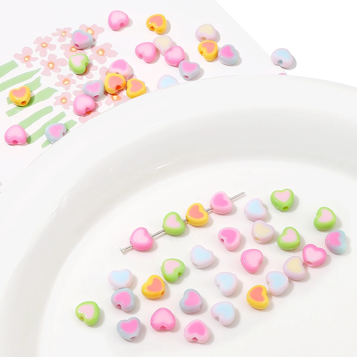 30pcs Love Heart Acrylic Bead Loose Spacer Beads For DIY Bracelet Necklace Jewelry Making Needlework Accessories