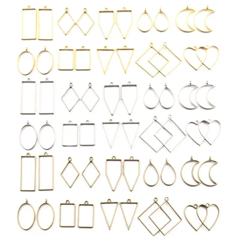 30pcs Metal Geometric Hollow Frame Pendant Charm UV Epoxy Resin Craft Bezel For DIY Jewelry Making Accessories