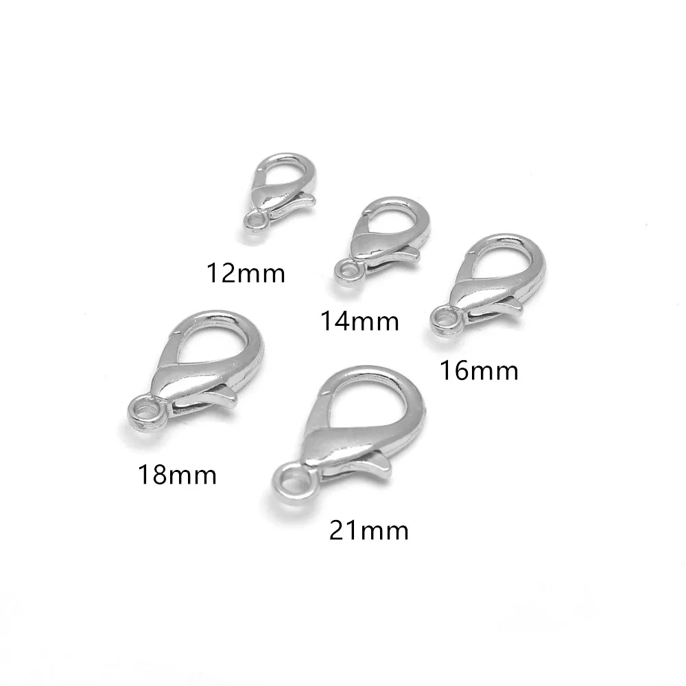 50Pcs 10 12 14 16 18 21mm Lobster Clasps Silver Plated Lobster Claw Clasps For Bracelet Necklace Jewelry Making Findings