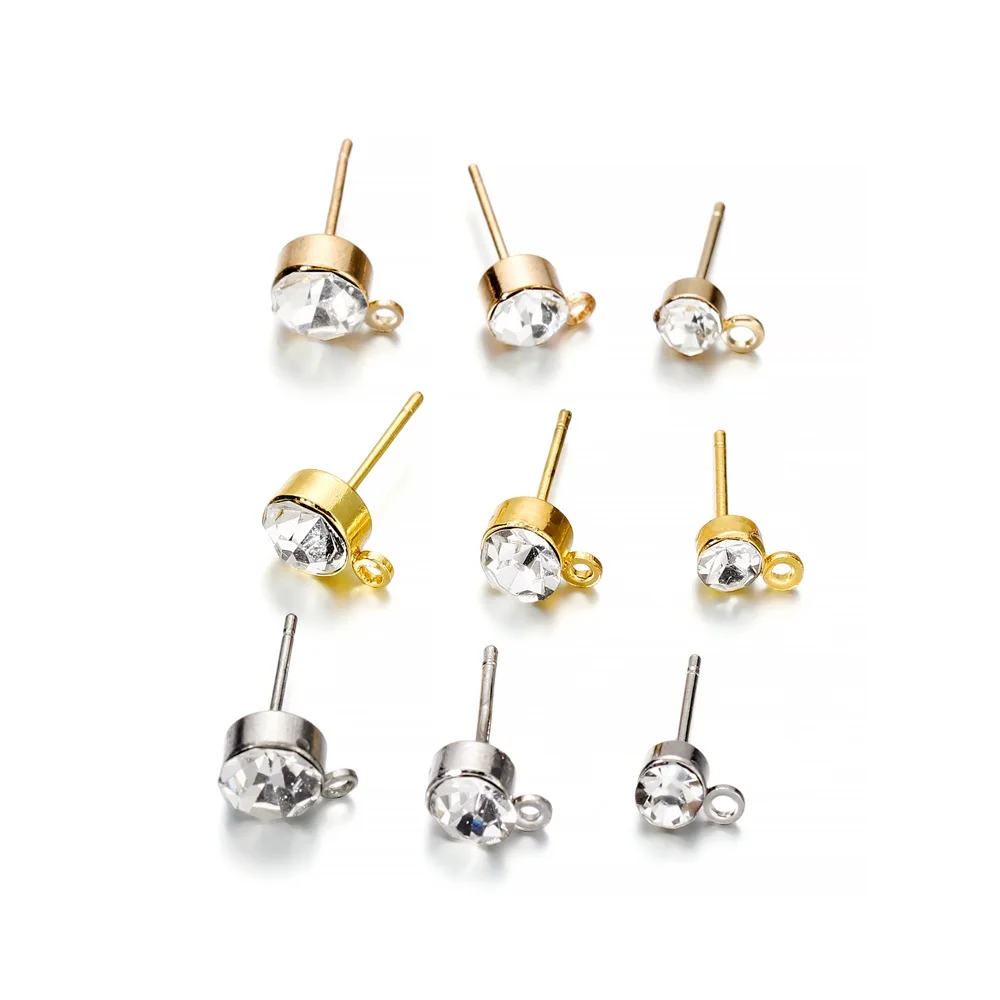 50pcs/lot 4 5 6 mm Clear Rhinestone Earring Posts Ear Studs with Loop Fit DIY Earrings Jewelry Making Supplies Accessories