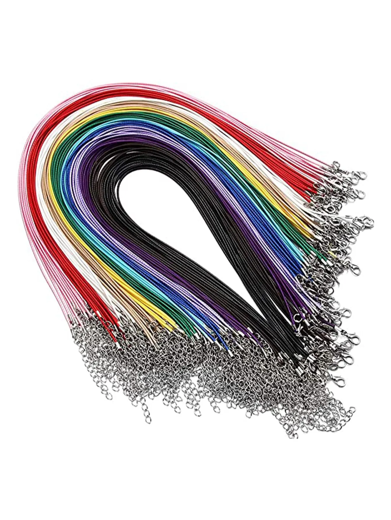 50Pcs random mixed color necklace rope buckle, 18in wax string loose for pendant, bracelet, necklace, jewelry making and beading supplies