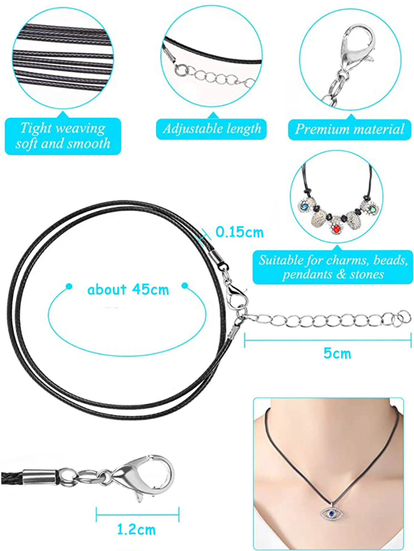 50Pcs random mixed color necklace rope buckle, 18in wax string loose for pendant, bracelet, necklace, jewelry making and beading supplies