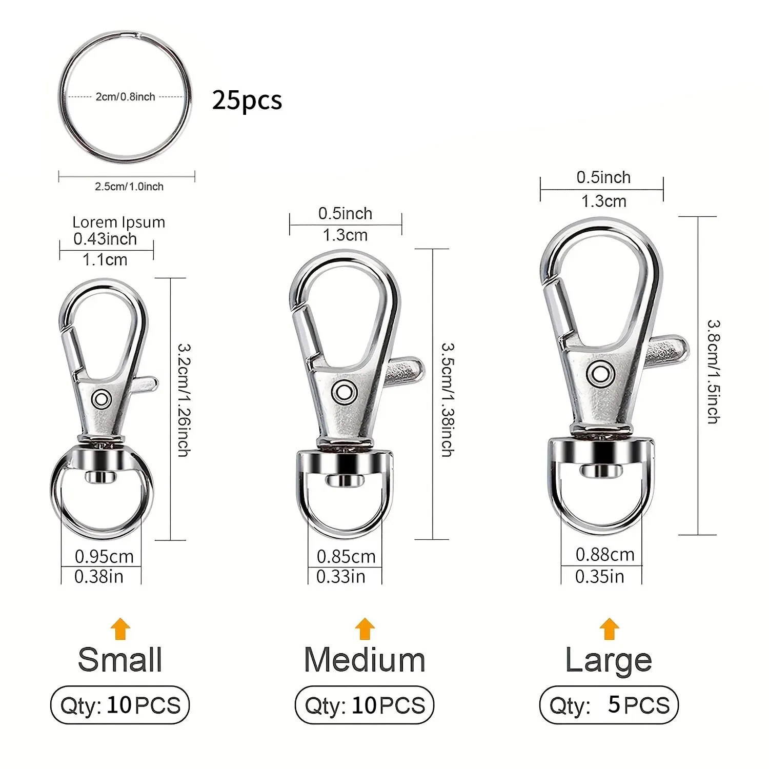 50PCS Swivel Snap Hooks With Key Rings, Premium Metal Swivel Lobster Claw Clasps In Assorted Sizes (Large, Medium, Small) For K