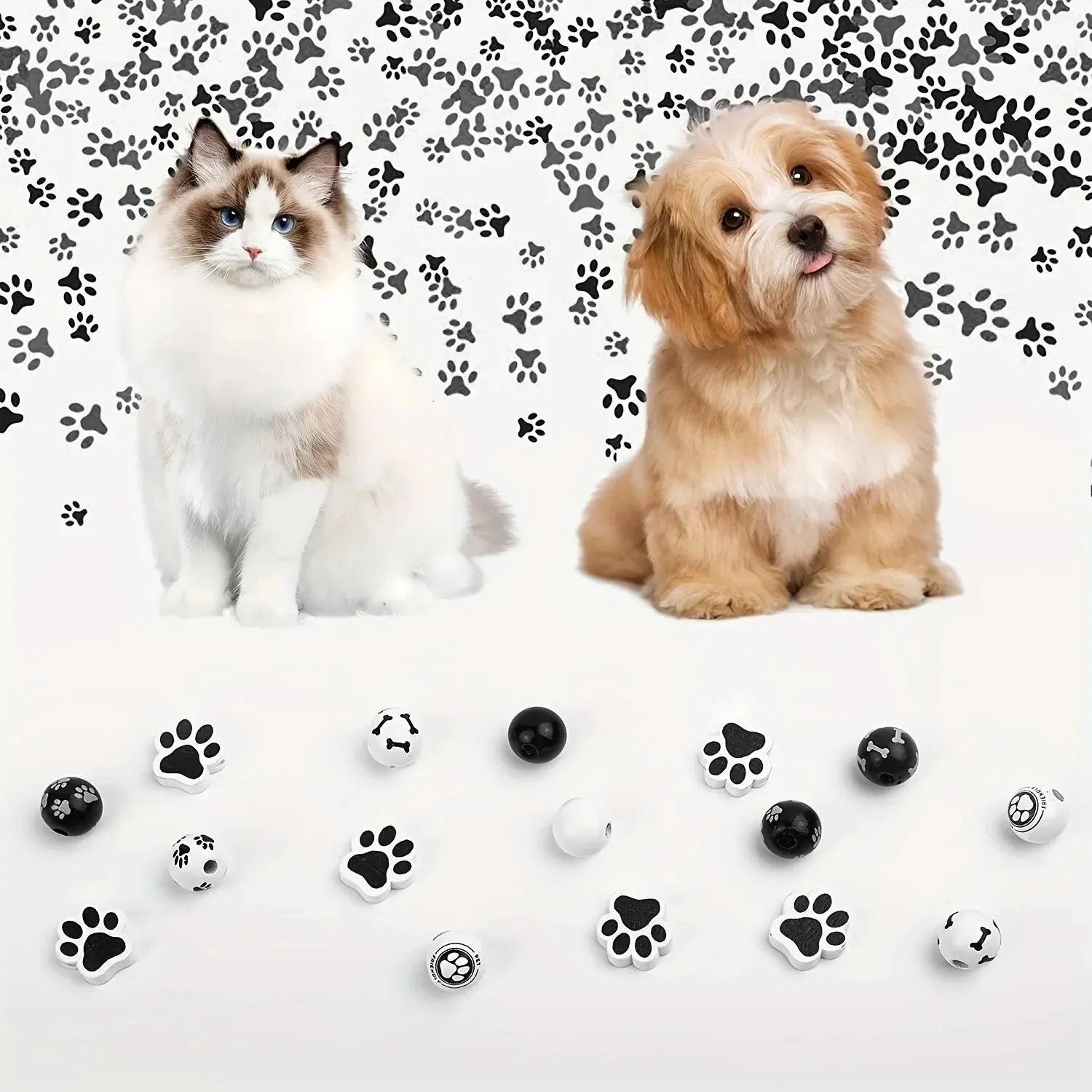 Product name: 75pcs Dog Paw Bone Pattern Wooden Beads Black And White Wooden Craft Beads Puppy Paw Footprint Spacer Beads For DIY Jewelry