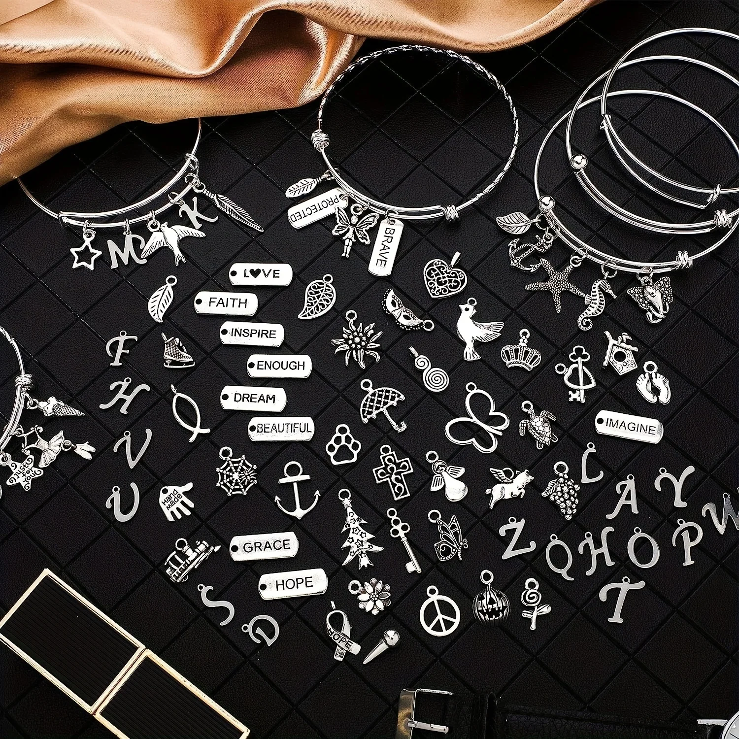 Adjustable Silver Bracelets,Hidden Silver Pendants (Random)Open Loop Pendants, Used For Craft Jewelry Making