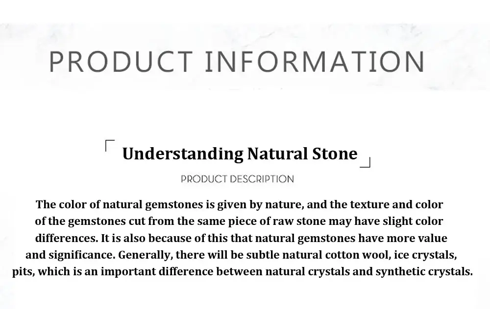 Crystal gemstones are natural minerals, each one has its own different appearance of its internal ice cracks, surface grains, pits, trachoma, color difference, etc. is a natural formation. Subject to the limitations of the process, it is difficult to avoid man-made defects include the size of the beads, grinding hard injuries and other workmanship will also appear flaws, bias holes and other phenomena. We physically shoot, the real side of the product to show customers. We maintain a super-high elimination rate and screening mechanism, quality service, the product will be delivered to your hands. Please look at the product of nature objectively, feel the beauty of nature!