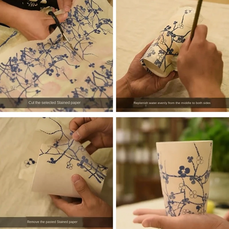 5. After drying, uncover the attached floral paper, the pattern will be printed on the blank space. After completion, it is covered with transparent glaze, and then it can be fired in the kiln and wait for the result.