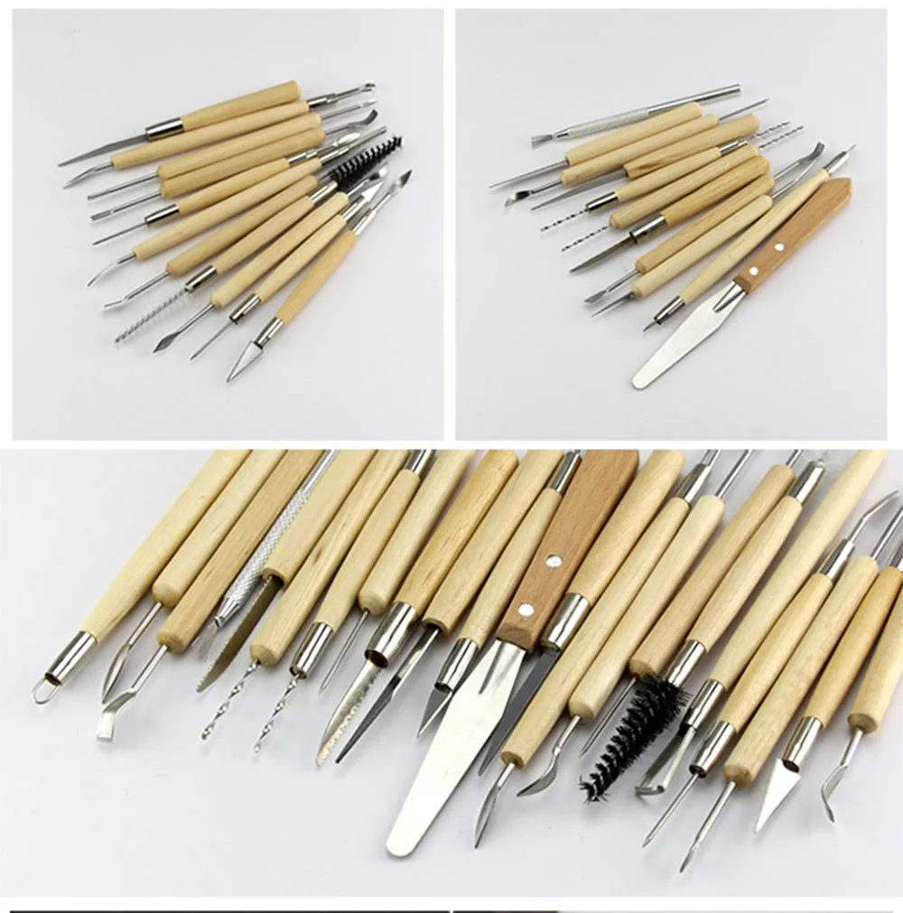 22pcs DIY Art Clay Pottery Tool set Crafts Clay Sculpting Tool kit Pottery & Ceramics Wooden Handle Modeling Clay Tools gift