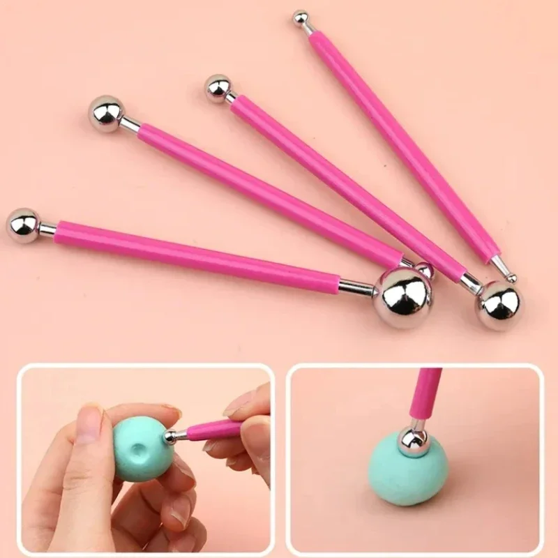 4-piece 8-headSoft Pottery Stainless Steel Indentation Pen Ball Rod Steel Ball Pen Clay DIY Handmade Ceramic Tools