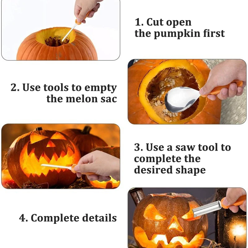 3.Durable and easy to clean: the pumpkin carving set is made of polypropylene and thick stainless steel, which makes them durable and easy to clean.