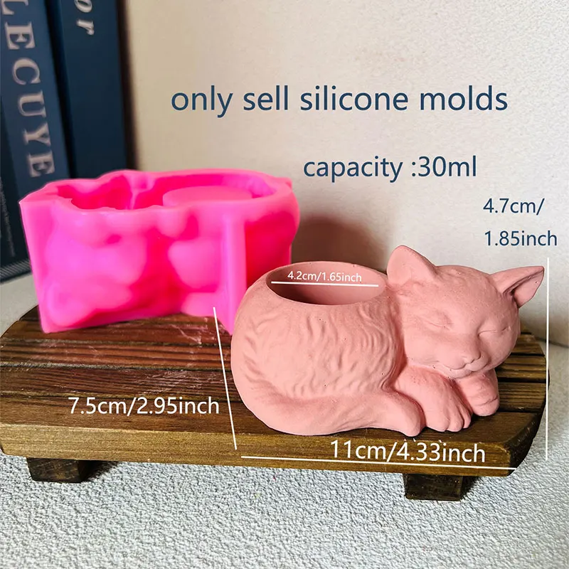Cement Flowerpot Silicone Mold Garden Decor DIY Snails Planters Pen Holder Clay Mold Sleeping Kitty Concrete Candle Vessel Mold