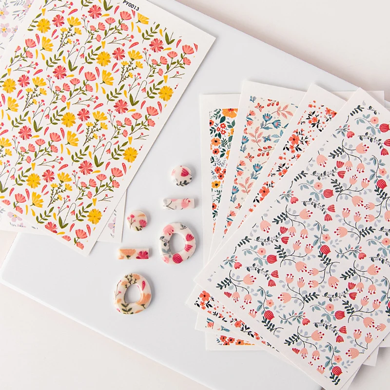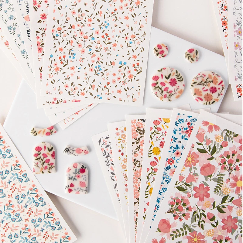 Flower Pattern Polymer Clay Transfer Paper Water Soluble Stickers Printing Paper Jewelry Earrings Making Tools Ceramic Pottery