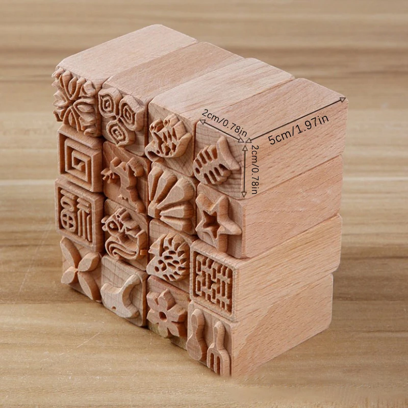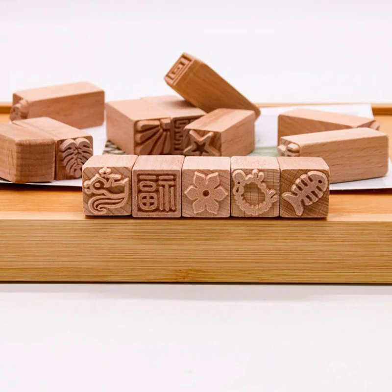 Hand Carved Wooden Stamps Wood Seal for Printing DIY Clay Pottery Blocks Tool Fish Bone / Squirrel Flower Deer