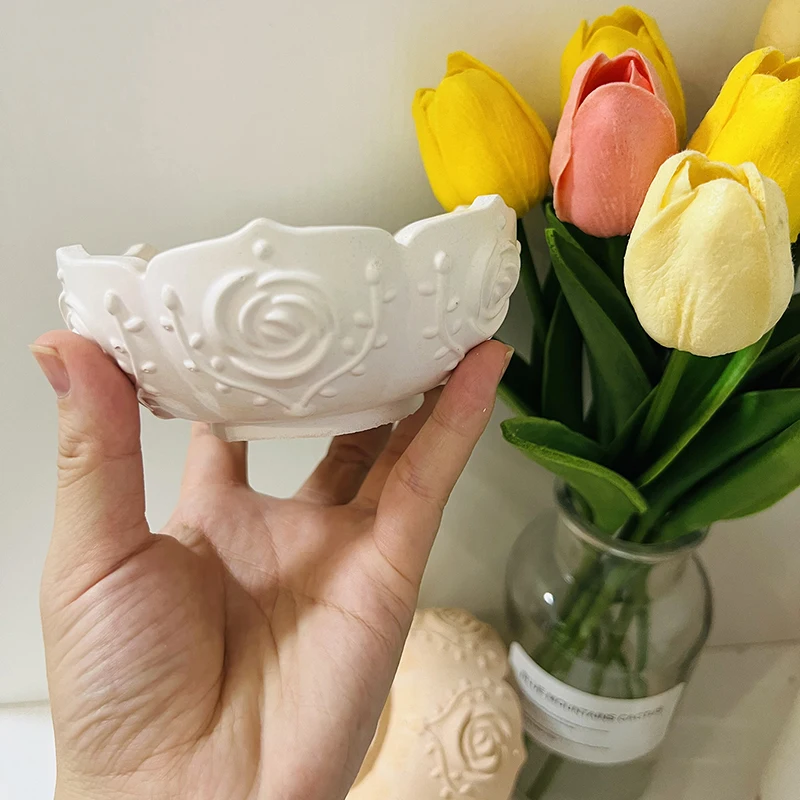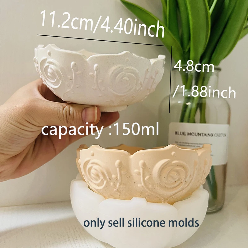 Lotus Storage Bowl Silicone Mold Rose Bowl Candle Cup Vessel Cement Mold Epoxy Resin Lotus Flowerpot DIY Molds