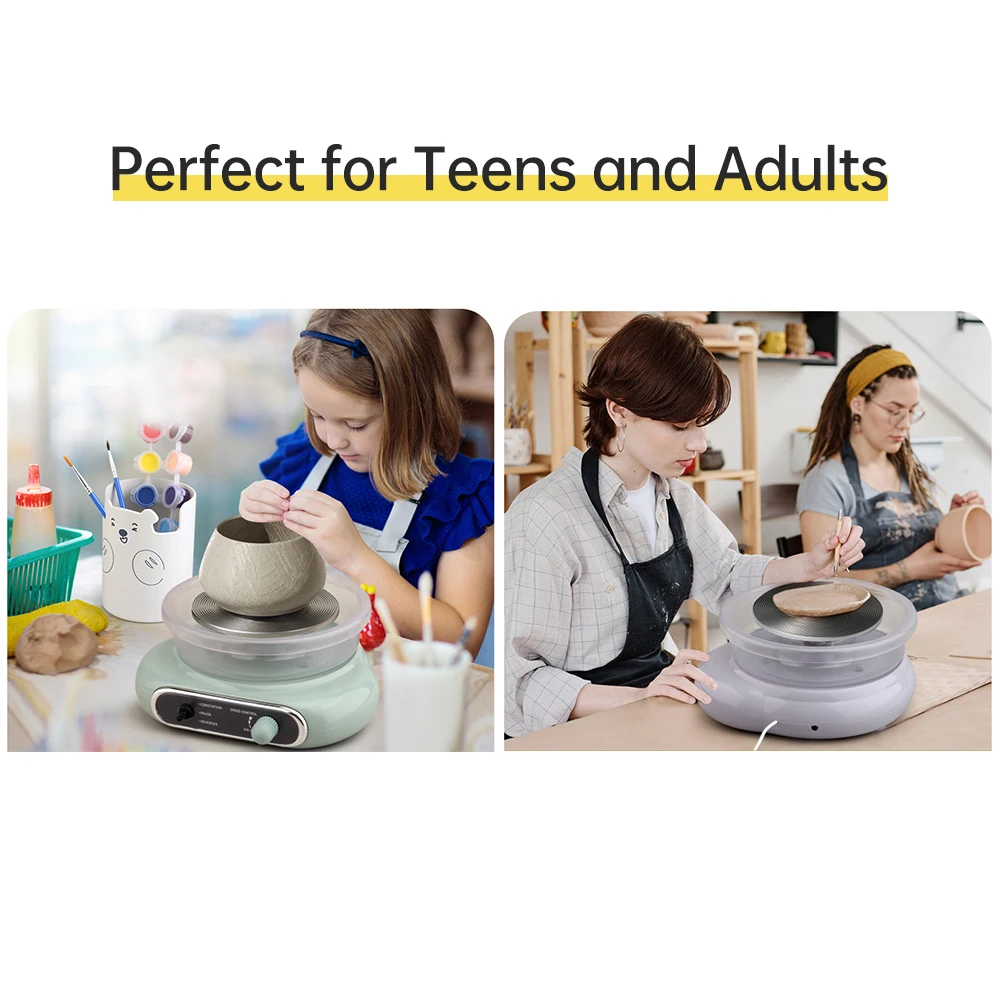 ✅ 【Compact & Easy-to-Clean Design】Designed to be both lightweight and compact, our electric ceramic wheel is easy to store and child-friendly. The detachable wheel plate and splash pan facilitate straightforward cleaning, assuring a smooth experience after each creative session.