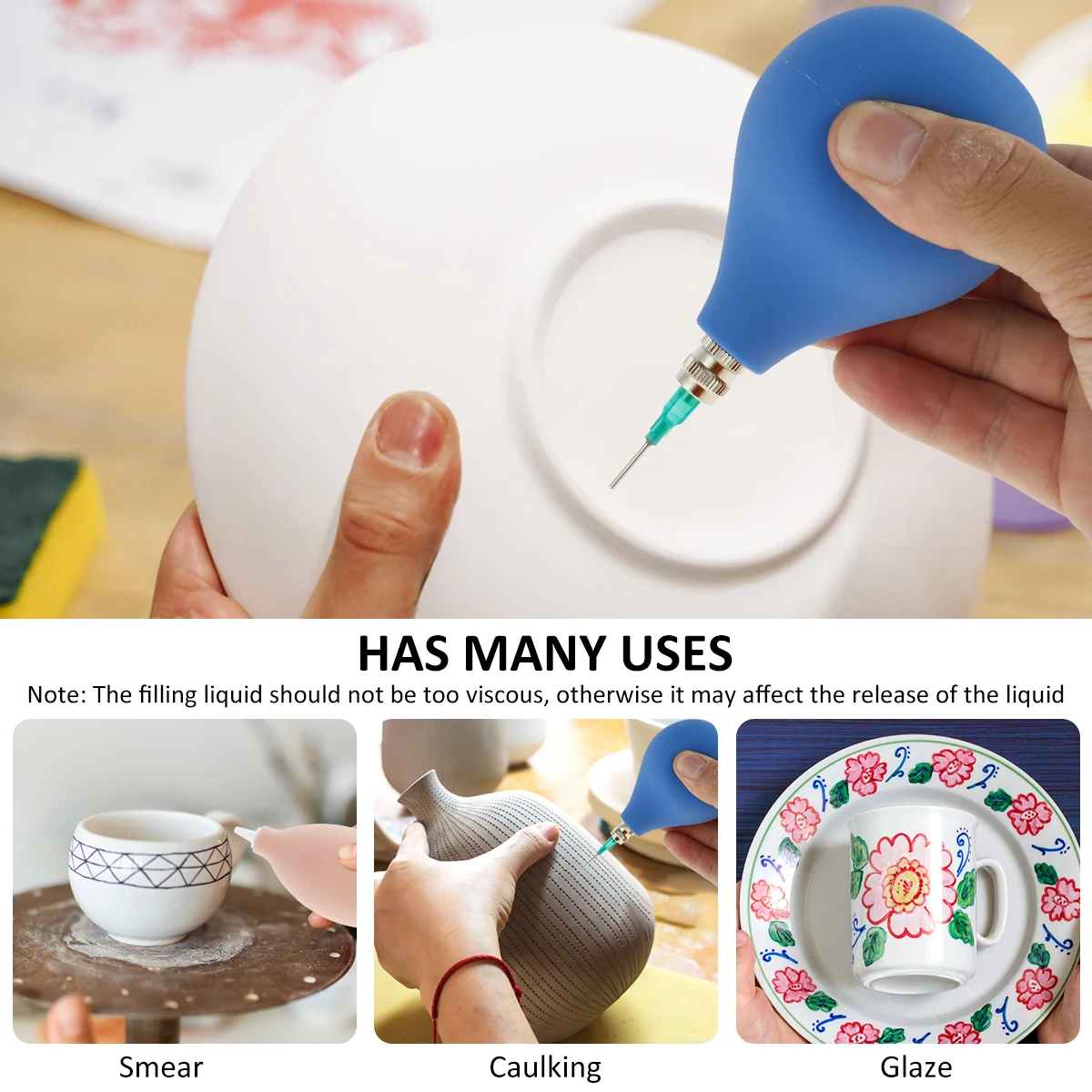 [Multipurpose] Our pottery precision applicator is not only used for glazing ceramic bottles, but also can be used for applying other thin liquids and caulking. (Note: Some of the small size needles are a bit thin and long, please be careful that the liquid you fill is not too thick, otherwise it may affect the release of the liquid.)
