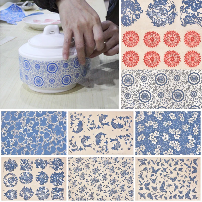 5. After drying, uncover the attached floral paper, the pattern will be printed on the blank space. After completion, it is covered with transparent glaze, and then it can be fired in the kiln and wait for the result.