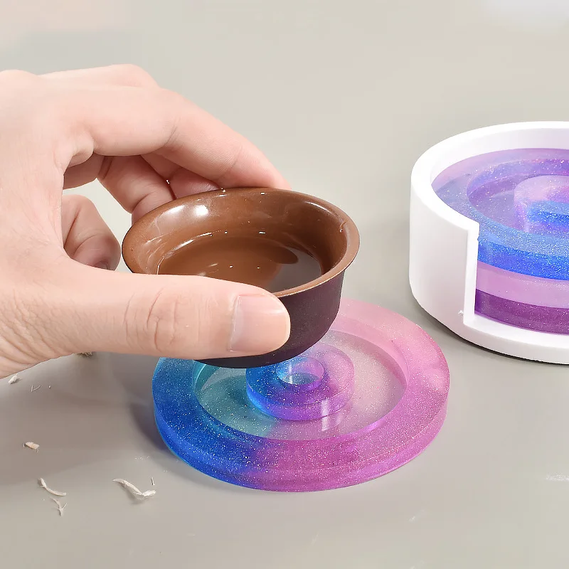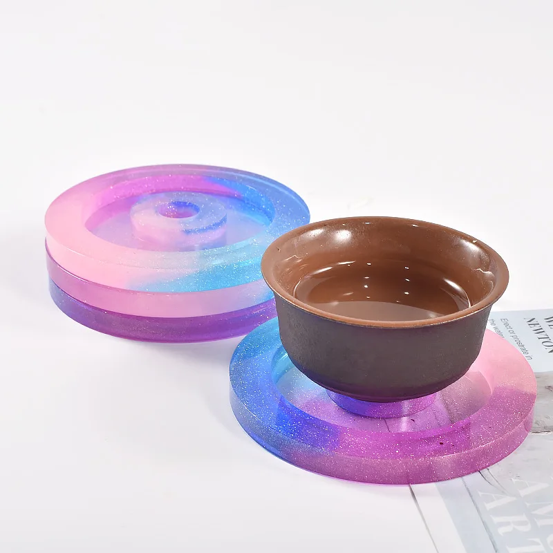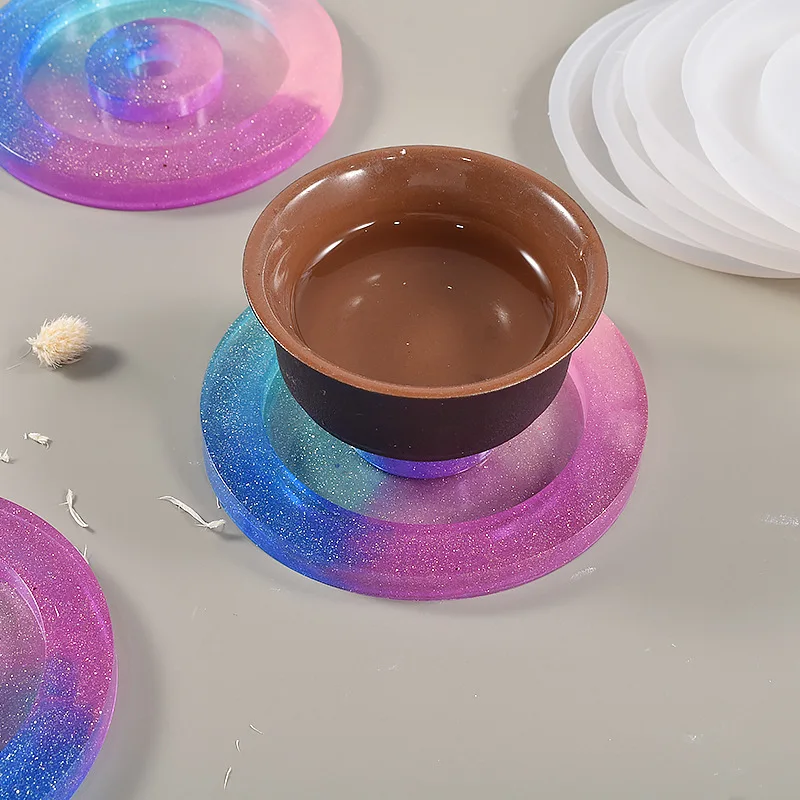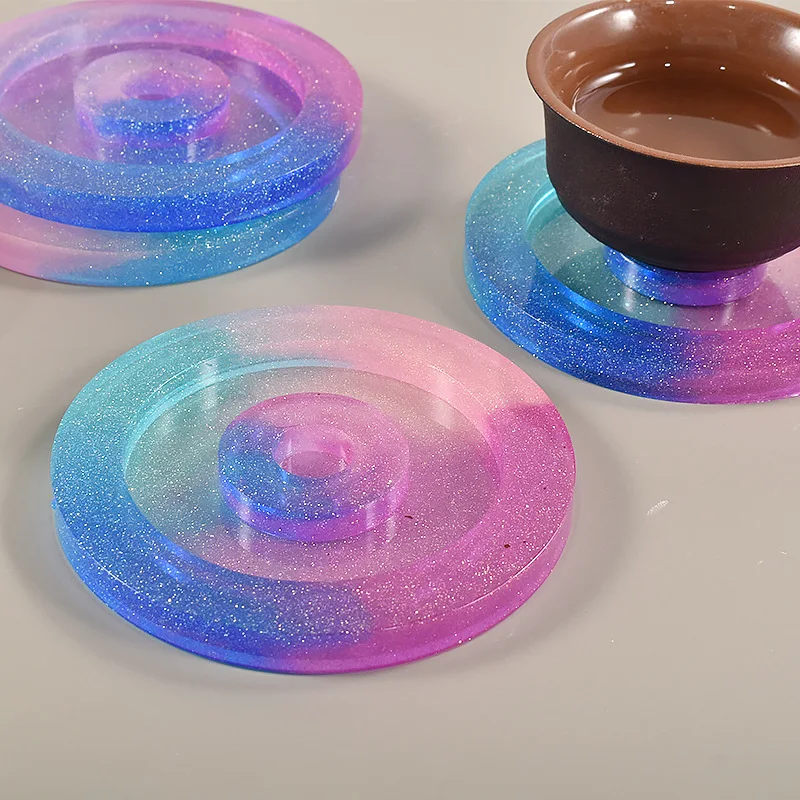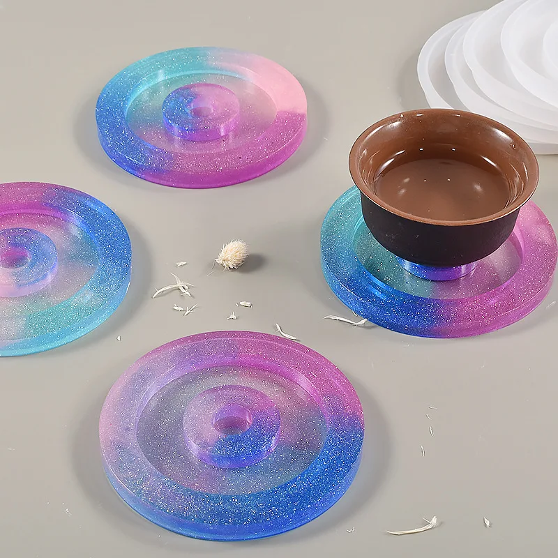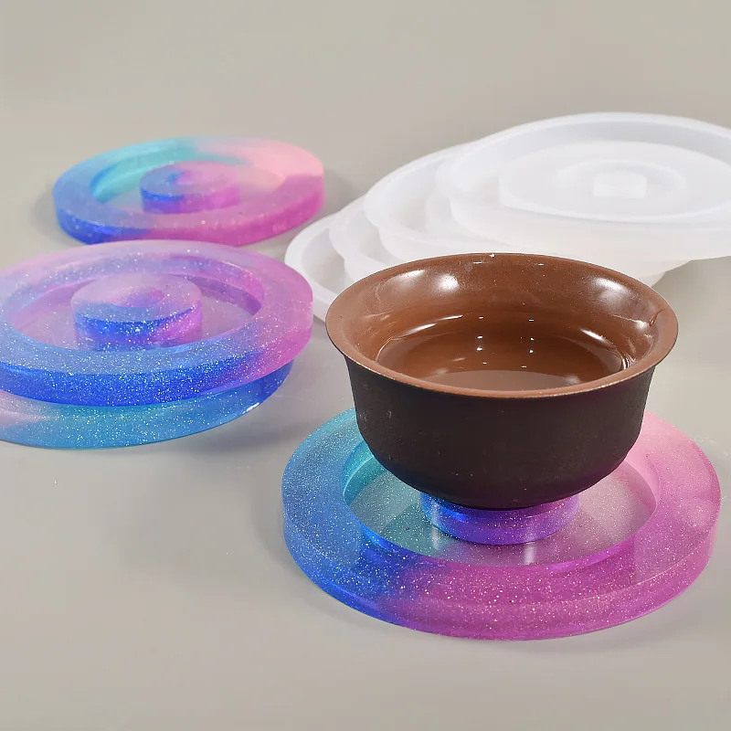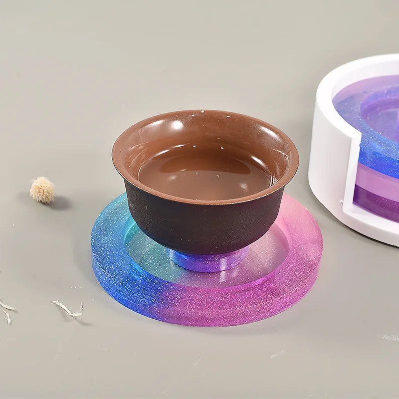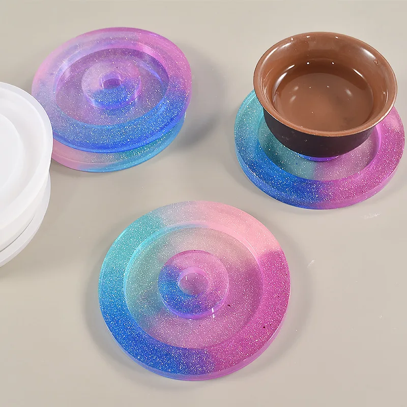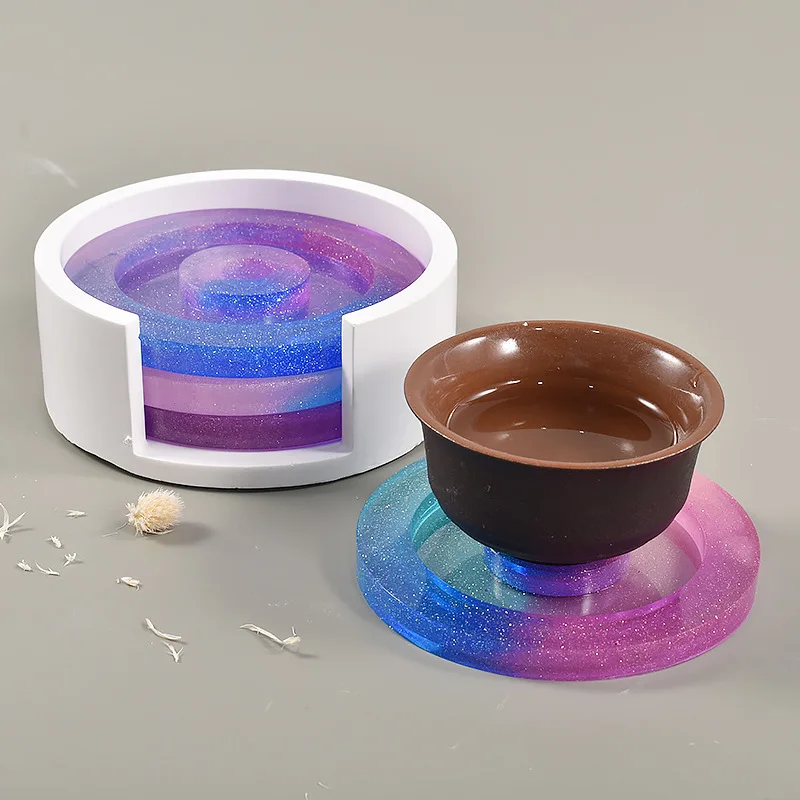 Diy Silicone Coaster Mold Set, Round Crystal Drop Resin Coaster With Storage Base Mold